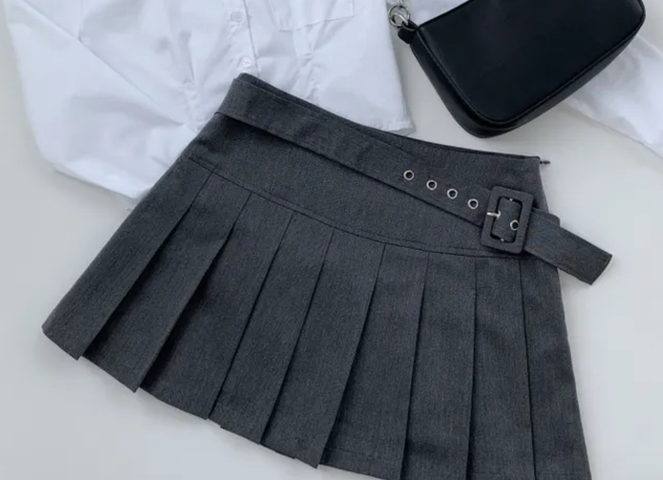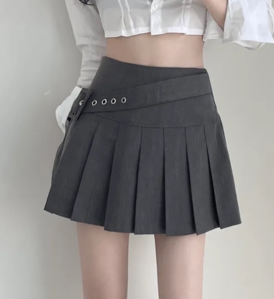 側面腰帶設計 百褶短裙