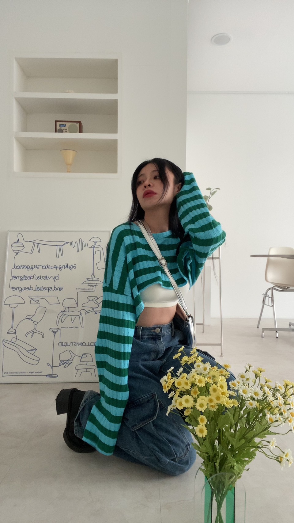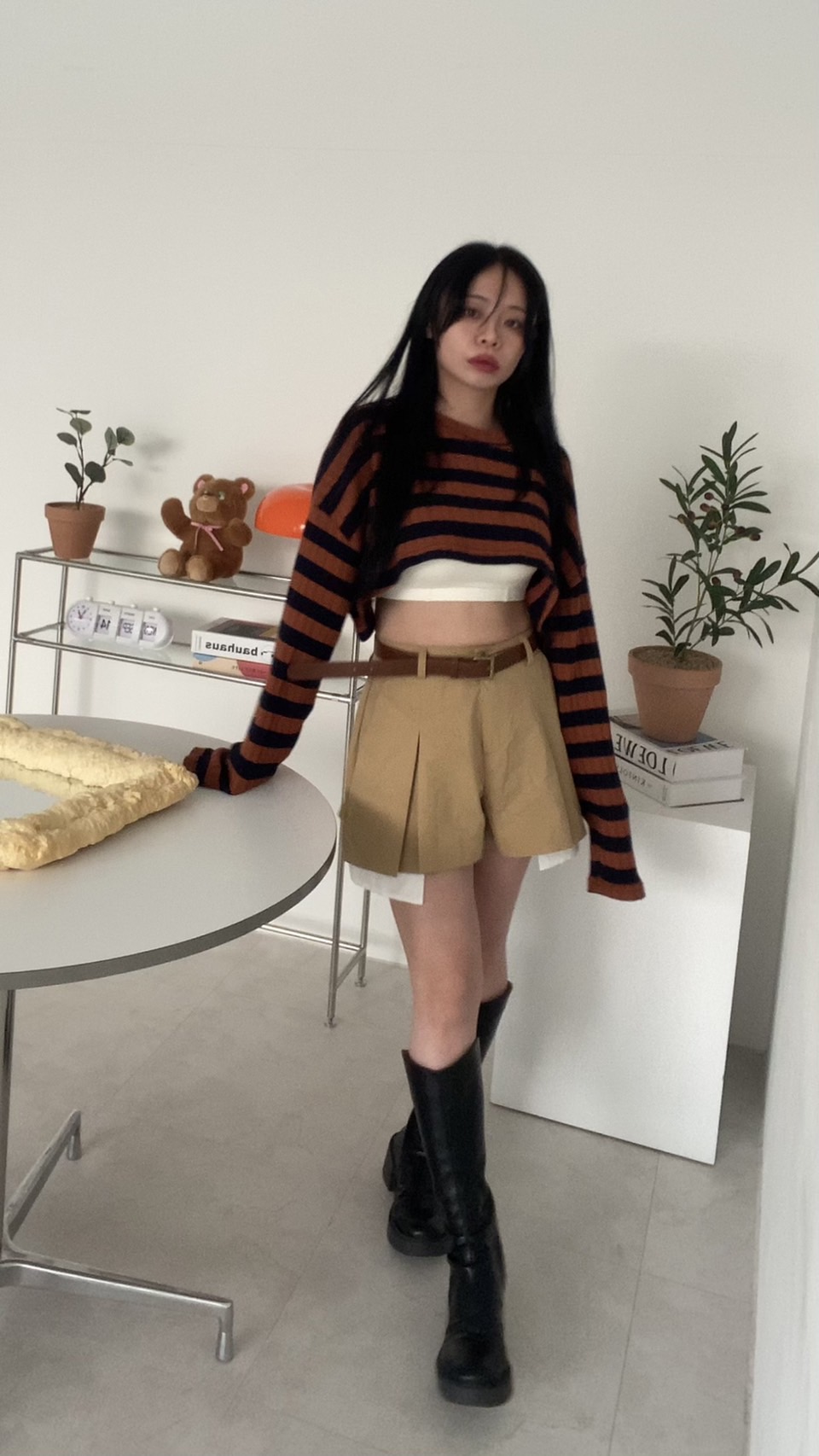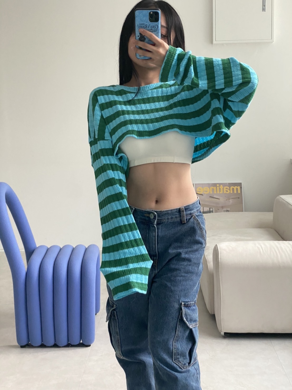 毛怪的萬聖節 萌袖短版針織 - 跟你們說條紋捲土重來