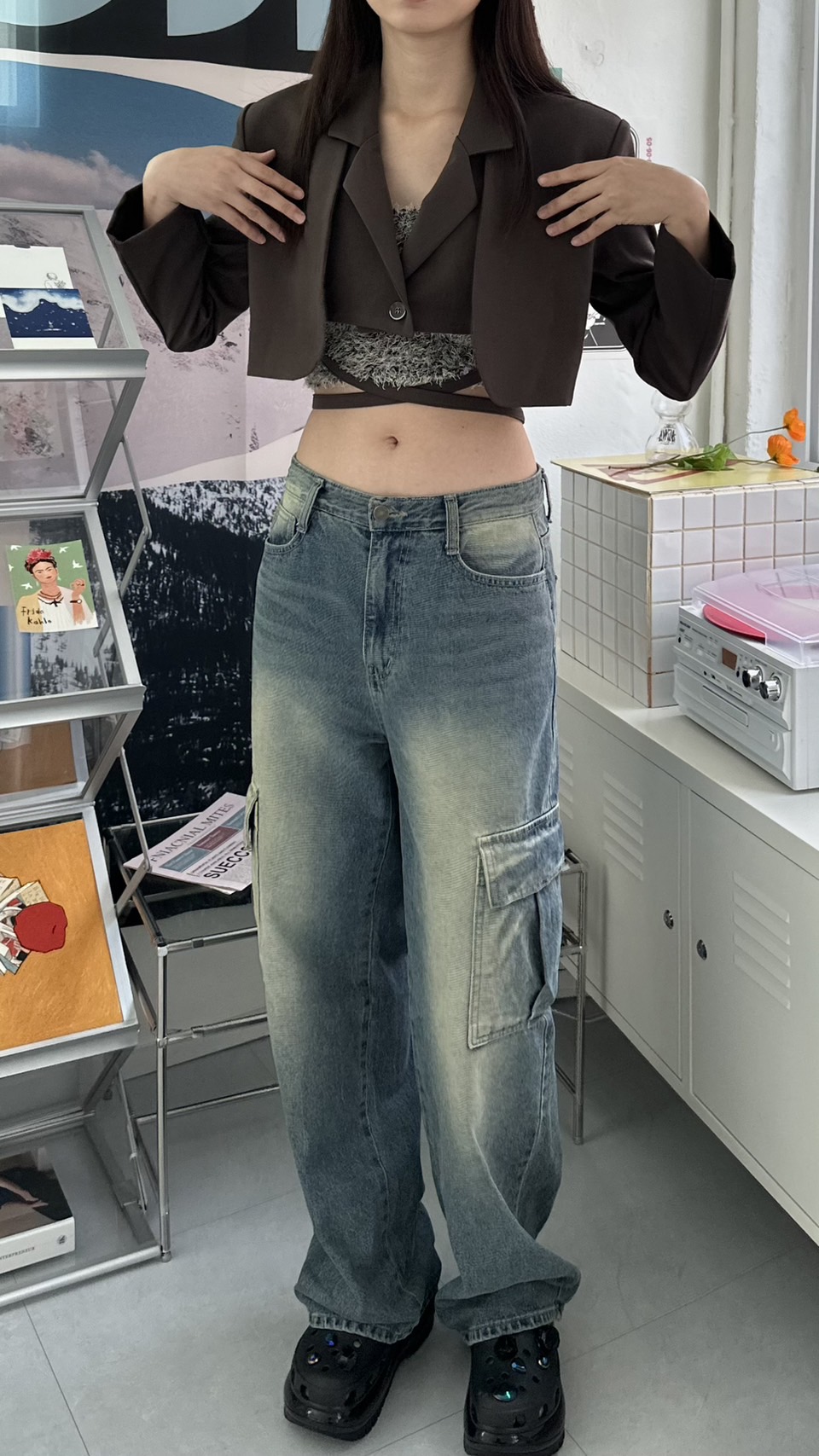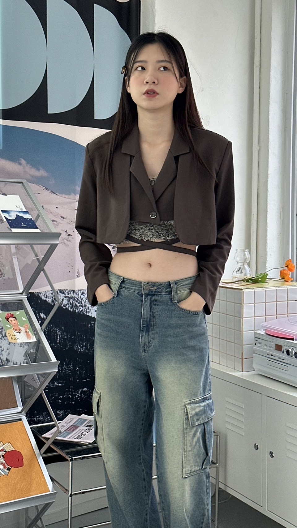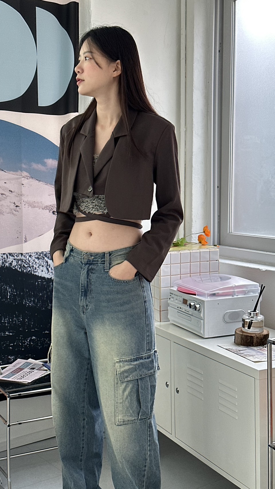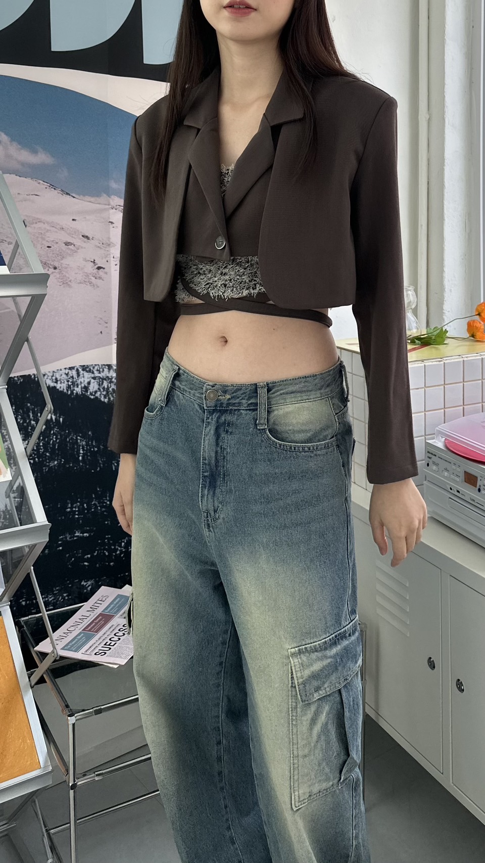 設計感短版西外 (版帶假兩件)
